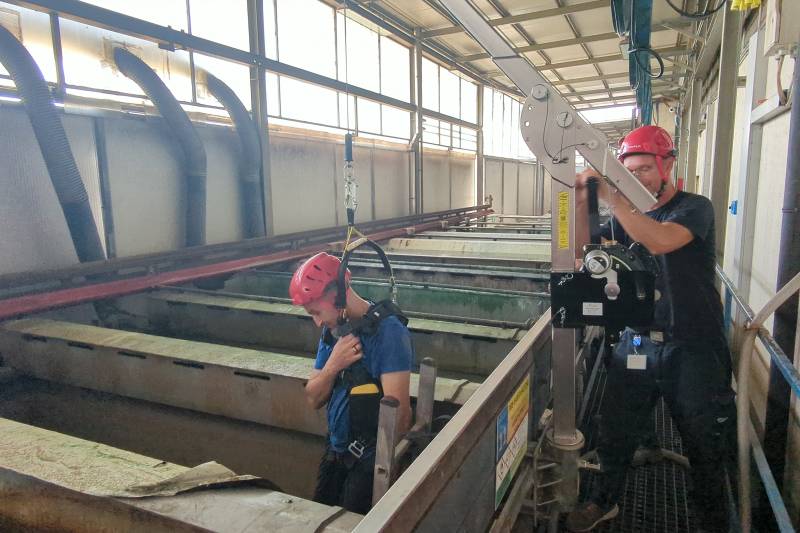 Pescante anticaídas ajustable en acero inoxidable para espacios confinados.