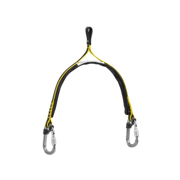 Rettungsbügel für einen Komplettgurt oder für einen mit einem Brustgurt kombinierten Sitz- und Haltegurt zum senkrechten Abseilen. Inklusive zwei Dreieckige Karabiner.