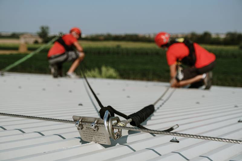 Lanyards are used as an intermediate element to connect the worker's harness to the anchorage point.