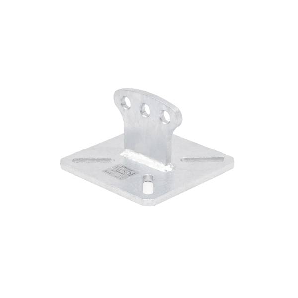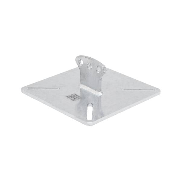 Plaque en acier galvanisé à chaud avec base de 180x180x10 mm et à 4 rainures pour la fixation. Parfait pour installer des lignes de vie sur des murs en béton armé.