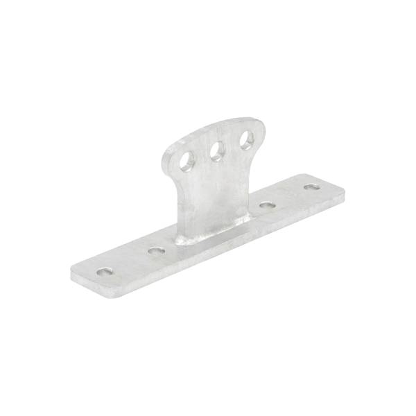 Plaque en acier galvanisé à chaud. Base de 300x60x10 mm et à 4 trous 15 mm pour la fixation. Parfait pour les lignes de vie sur les bordures en béton armé des bâtiments préfabriqués.