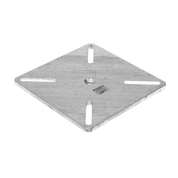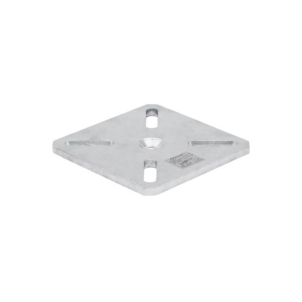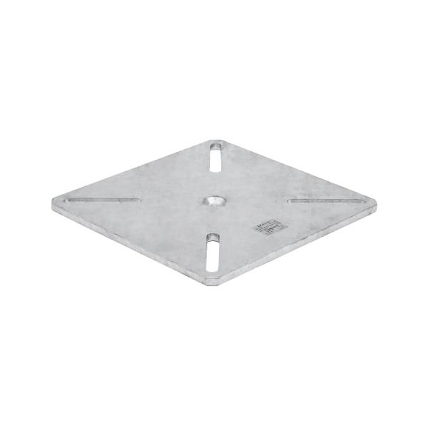 Plaque en acier galvanisé à chaud avec base de 300x300x10 mm et à 4 rainures pour la fixation. Parfait pour créer des lignes de vie installées sur des murs en maçonnerie.