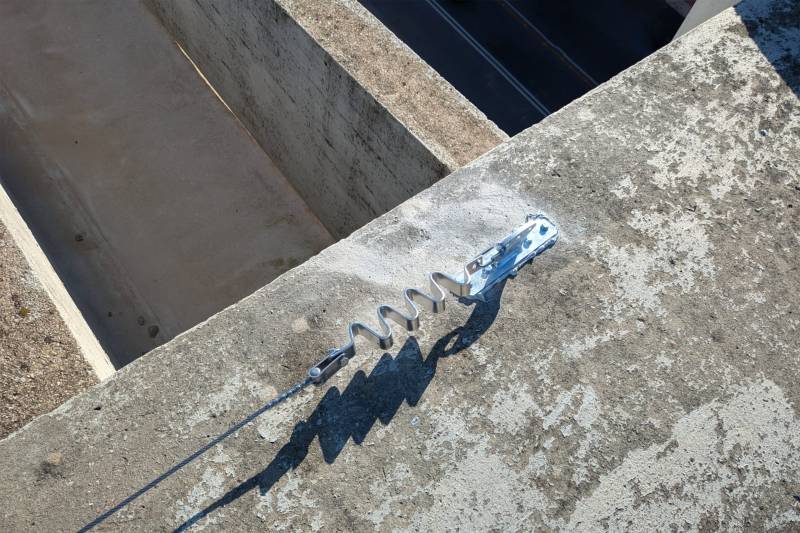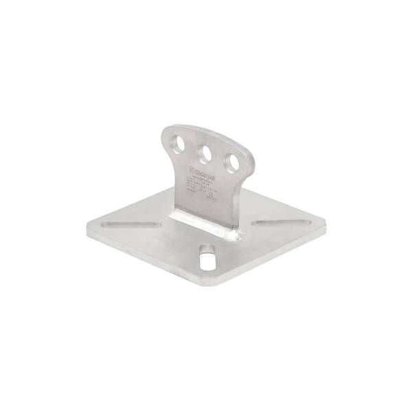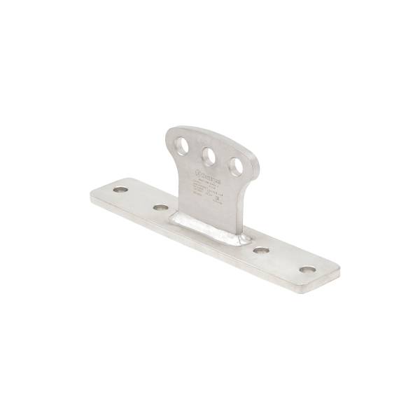 Produit en acier inox avec base de 300x60x10 mm et à 4 trous 15 mm pour la fixation. Parfait pour les lignes de vie sur les bordures en béton armé des bâtiments préfabriqués.