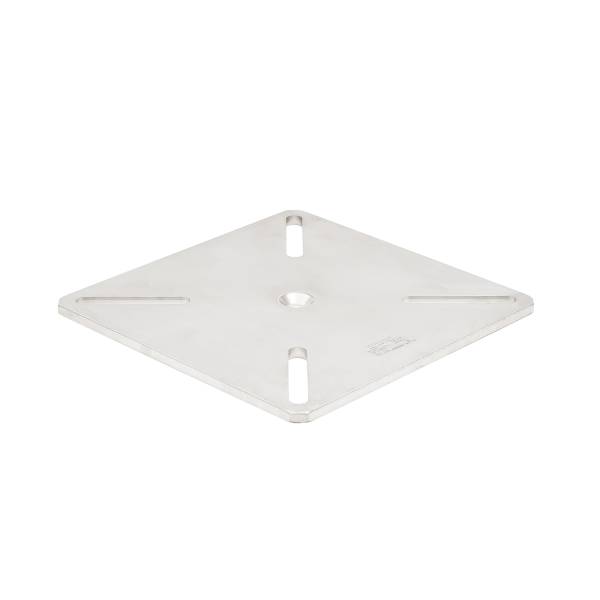 Piastra in acciaio inox con base 180x180x10 mm e 4 scanalature per il fissaggio. Perfetto per l'installazione di linee vita su pareti in cemento armato.