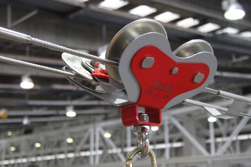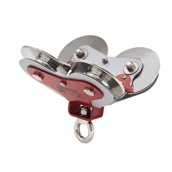 Navetta in acciaio inox, progettata per lavorare contemporaneamente su due cavi d 8mm. Composta da 4 pulegge sorrette da 8 cuscinetti per una perfetta scorrevolezza.