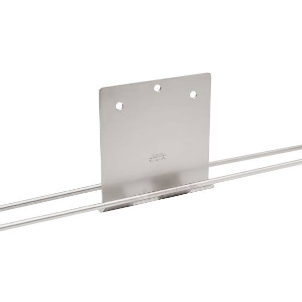 Dispositivo di estremita' SAR in acciaio zincato con base di dimensione 400x160x15 mm e con 8 fori asolati per il fissaggio. Piastra orientabile per fissaggio a parete, non adatta all’uso a soffitto.